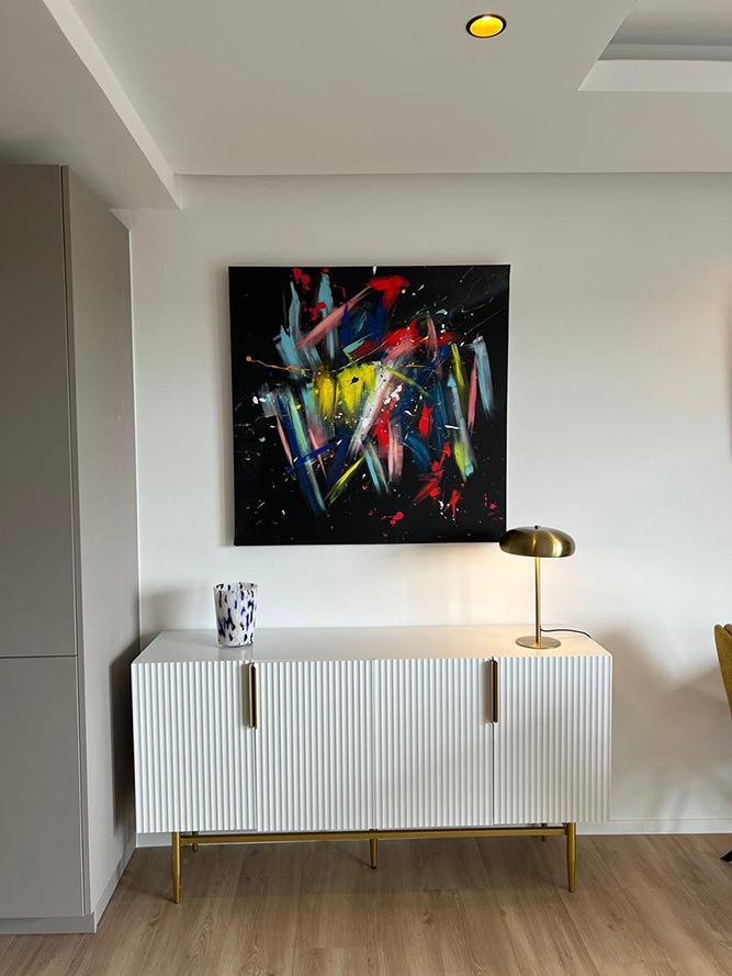 Je réalise les oeuvres abstraites par série, donc oui j’ai régulièrement des oeuvres disponibles à l’achat.