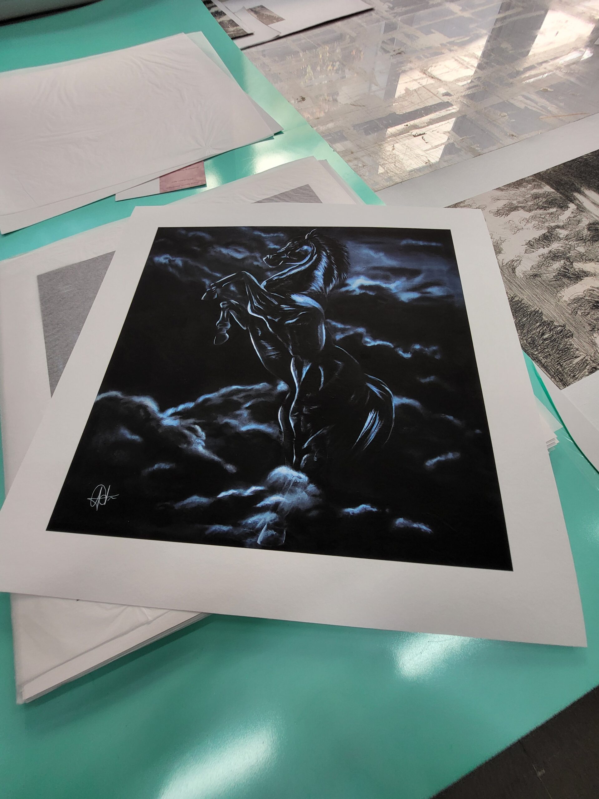 Le papier utilisé est un papier 100% coton Inova, texture 315g. Des tirages sur toile en lin peuvent être édités sur demande. Chaque exemplaire est signé et numéroté au crayon par l’artiste. Un certificat d’authenticité sera remis à l’acquéreur.