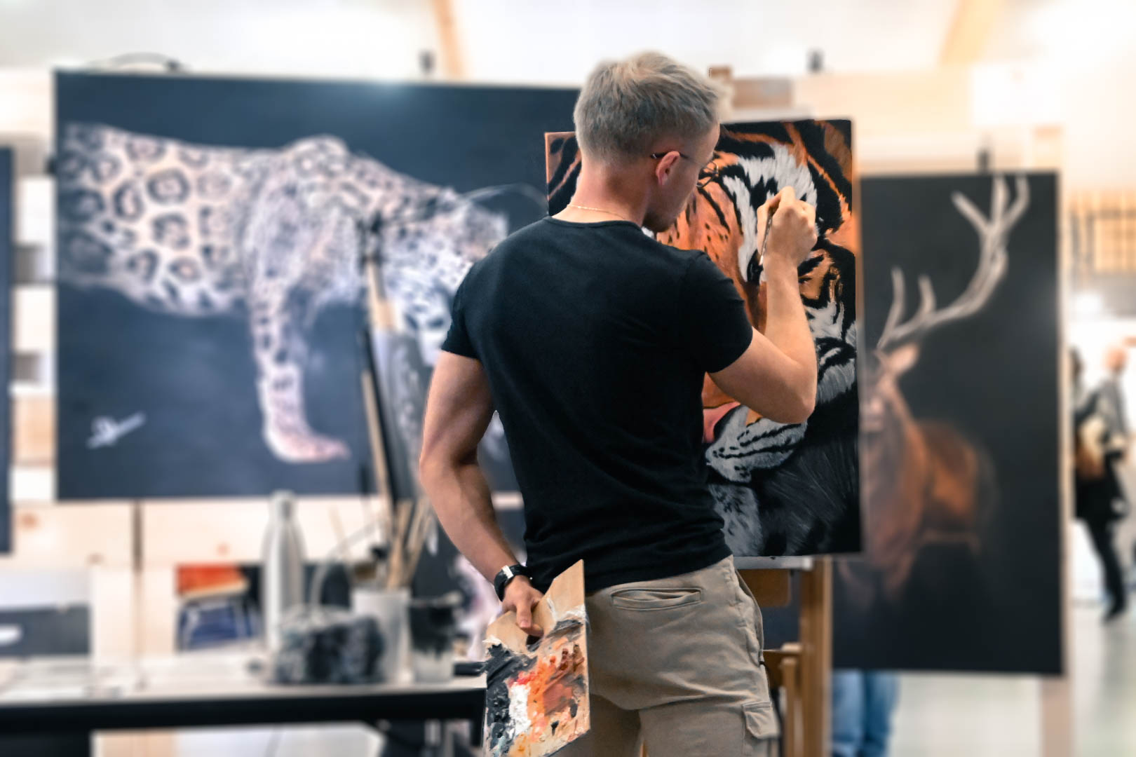 Adrien expose partout en France à l’occasion de divers salons, expositions et évènements en lien avec l’art animalier et l’art contemporain.